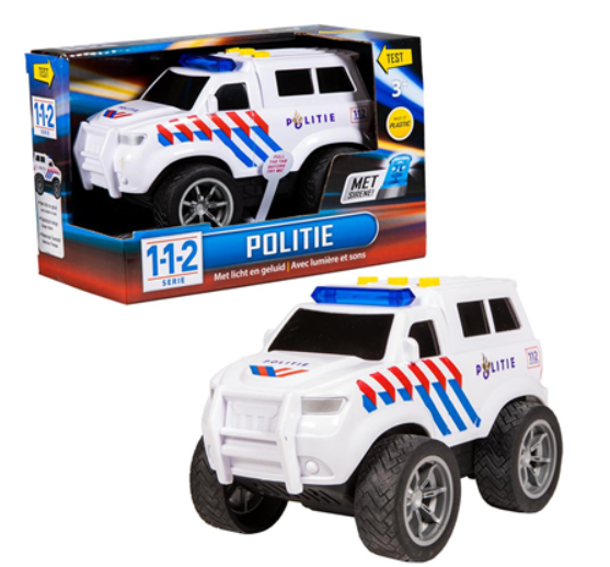 Rescue Racer, in politie-uitvoering. Met licht-effecten en sirenegeluid. Afmetingen: 18 x 8 x 10,5 cm.