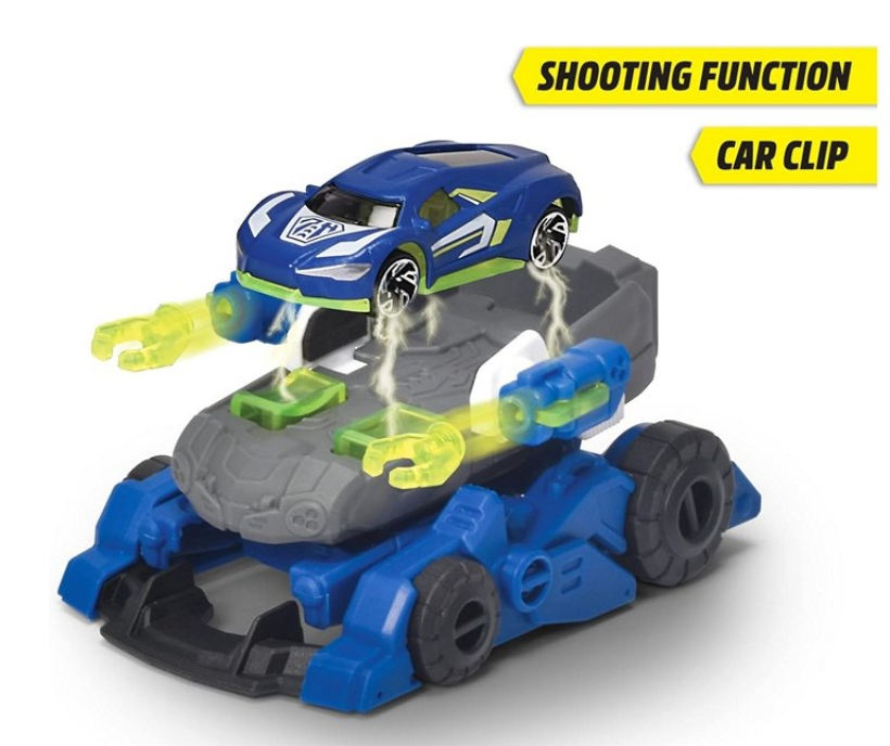Met het onderstel kan de politieauto transformeren tot een grote, sterke robot. Op de armen van de robot zit een schietfunctie. Om extra snel te zijn kun je raceauto loskoppelen van de transformeerrobot, zo is de auto nog sneller.