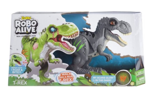 Pas op voor de T-Rex! De Zuru Robo Alive Attacking T-Rex maakt geluiden en zijn littekens geven licht in het donker. De dinosaurus is geschikt voor kinderen vanaf 3 jaar.