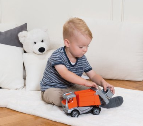 LENA® Truckies vuilniswagen met assen van gegalvaniseerd staal, met cabine. De achterklep kan worden geopend om de vuilnis te lossenopenen.
