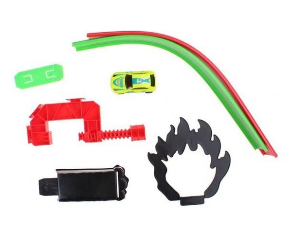 Met deze stoere racebaan van Race Master maak je jouw race extra creatief en spannend. Dankzij deze daling in de racebaan gaat jouw raceauto op topsnelheid. De racebaan wordt geleverd inclusief één stoere raceauto. (je kunt kiezen uit een een gele of een paarse auto)